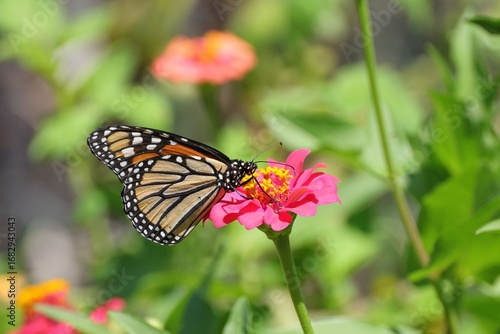 © Wirestock, Fototapeta premium Monarch Butterfly on Pink Flower