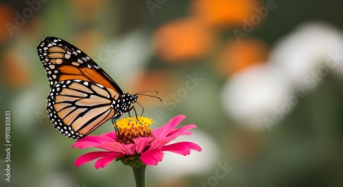 © Purple 1, Obraz premium Monarch butterfly on pink flower in garden