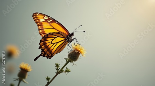 © WonderPic, Obraz premium Monarch Butterfly on Yellow Flower at Sunrise