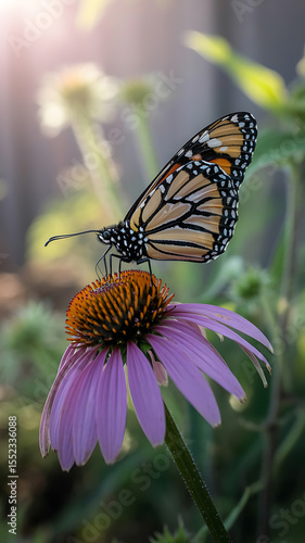 © avmed, Naklejka premium Monarch butterfly rests on a purple coneflower.