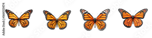 Fototapeta premium Monarch Butterfly Set: Vibrant Orange and Black Wings Isolated on White