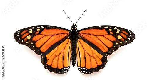 Obraz premium Monarch butterfly showing its beautiful orange wings on white background