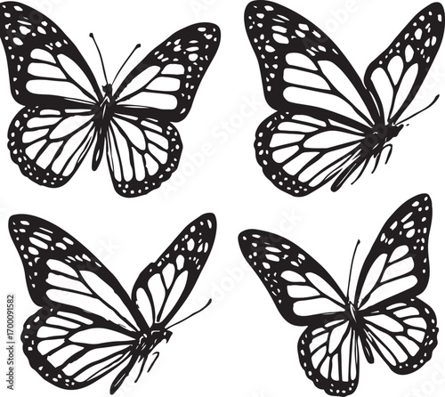Obraz premium Monarch butterfly vector set – beautiful insect silhouette and graphic art...