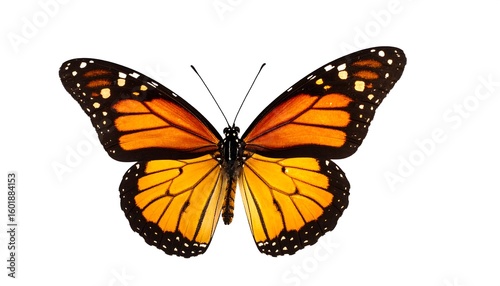 © Bagas, Fototapeta premium Monarch butterfly, wings spread, isolated on white
