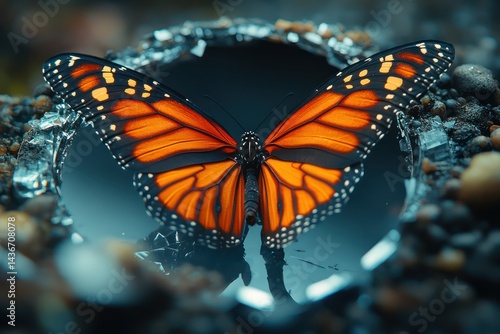 © menang, Fototapeta premium Monarch Butterfly with Broken Mirror, and Nature.