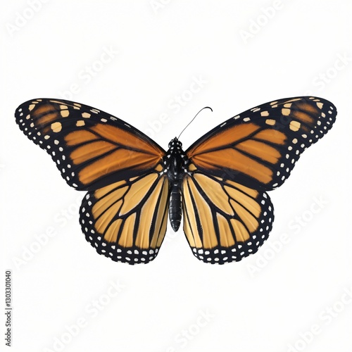 © Real Stuff PNG, Fototapeta premium Monarch Butterfly with Distinctive Orange and Black Wing Patterns Isolated on White Background.