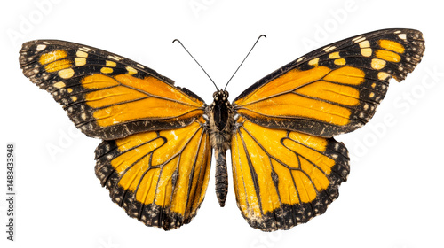 © Maestro, Naklejka premium Monarch butterfly with open wings, isolated, cut out transparent