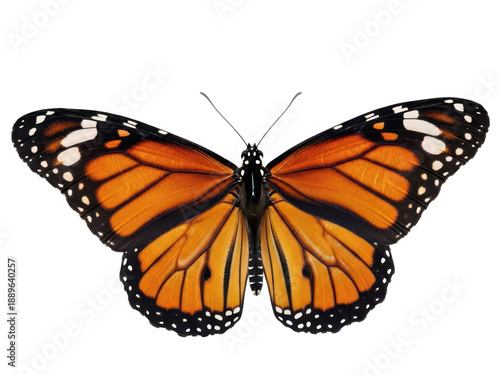 Fototapeta premium Monarch butterfly with orange wings and black veins on transparent background