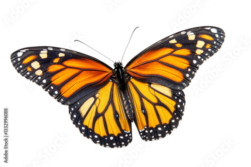 Fototapeta premium Monarch butterfly with orange wings and spots, cut out transparent