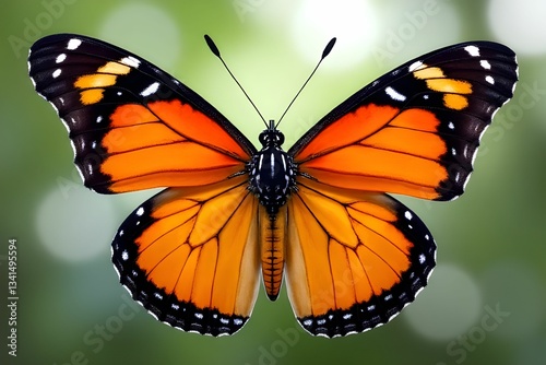 © Twt24, Fototapeta premium Monarch butterfly with vibrant orange wings, adorned with black and white markings. Beautiful insect concept. Animal background