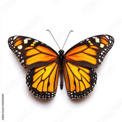 Fototapeta premium Monarch butterfly with vibrant orange wings displaying intricate patterns on white background