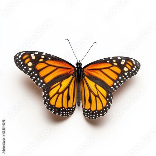Fototapeta premium Monarch butterfly with vibrant orange wings on a white background colorful...