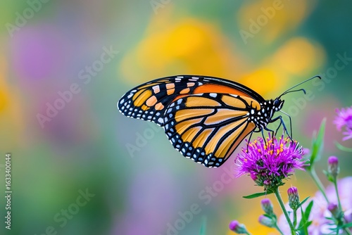 Fototapeta premium Monarch pollinating flower in natural habitat