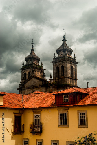© Galina, Fototapeta premium Monastery of Tibaes on a dramatic cloudy day, famous religious place of Minho region - Braga, Portugal