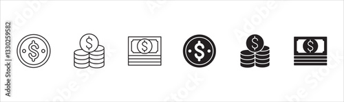 Obraz premium Money business icon set. Cash wealth icons. Company asset symbol. Icon set contains cash, balance, finance, fund, coin, paper money, digital financial, payment. Vector stock illustration.