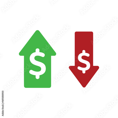 © Uttpol Saha, Obraz premium money increase and decrease icon. price, up, down, profit, loss, symbol with dollar and arrow sign. transparent png and vector illustration.