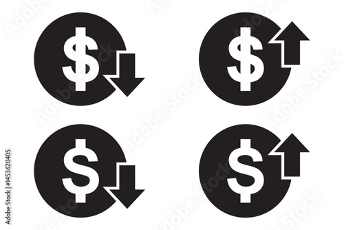 © Aquavisionweath6, Obraz premium Money increase or decrease icon set. dollar decrease increase symbol. profit and lose signs.