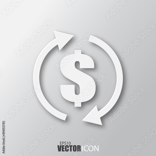 Fototapeta premium Money transfer icon in white style with shadow isolated on grey background.