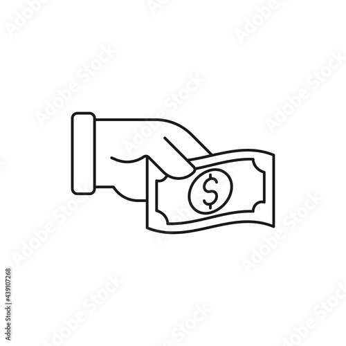 Fototapeta premium Money with Hand icon Vector Illustration. Money Cash on Hand icon vector design concept for Payment, Finance, Currency and Trading Business. Dollar Money icon for website, symbol, icon, sign, App UI