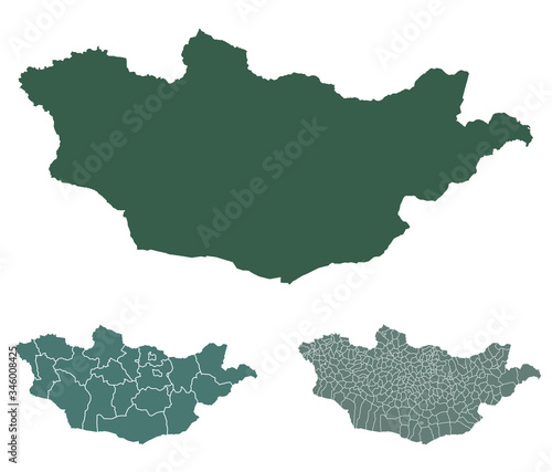 © Kostiantyn, Obraz premium Mongolia map outline administrative regions vector template for infographic design. Administrative borders.