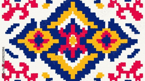 Fototapeta premium Mongolian Ger Felt Carpet Pattern, seamless design featuring intricate line art, vibrant colors, ideal for textile applications, home decor, or digital backgrounds