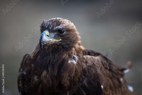 Obraz premium Mongolian golden eagle head close-up.