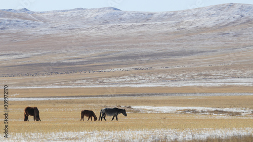 © rokacaptain, Fototapeta premium Mongolian wide field on the winter,