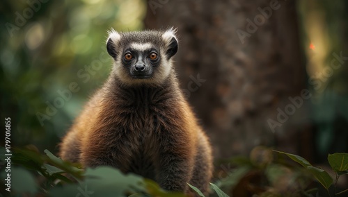 Naklejka premium Mongoose Lemur Close-Up, highlighting the unique features of this primate,...