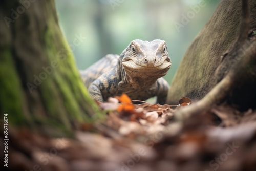 © studioworkstock, Fototapeta premium monitor lizard approaching tree hole entrance