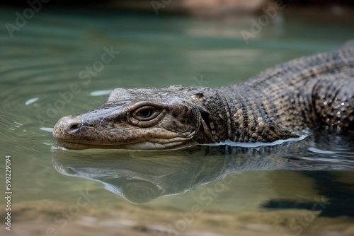 © Dan, Obraz premium Monitor lizard swimming in wate