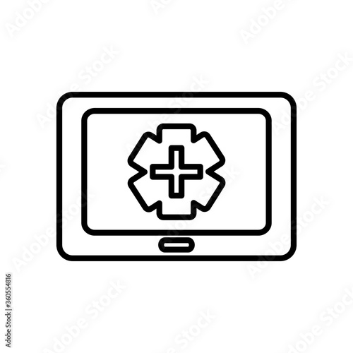 Fototapeta premium monitor with medical emergency cross icon on screen, line style