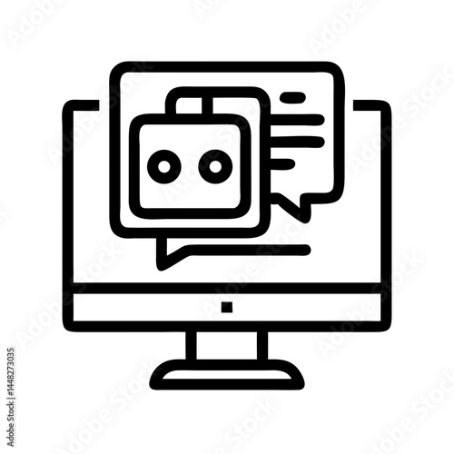 Fototapeta premium Monitor with Robot Face Representing AI Chatbot and Virtual Assistant Technology