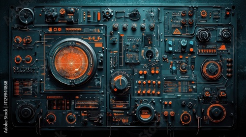© Ratchadaporn, Fototapeta premium Monitoring signals from the standard a futuristic control panel in a high-tech environment for enhanced signal analysis