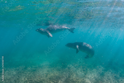 © Melissa Burovac, Fototapeta premium Monk seals playing underwater