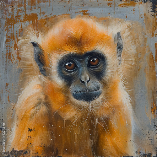 Fototapeta premium monkey animal portrait wildlife brown painting art mammal primate cute eyes fur face close-up nature brush strokes