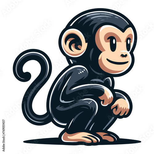 Fototapeta premium Monkey ape chimpanzee mascot cartoon character design illustration, cute funny adorable monkey concept vector template isolated on white background