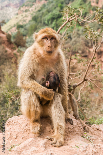 Naklejka premium Monkey at Cascades d'Ouzoud, Waterfall at Ouzoud, Morocco