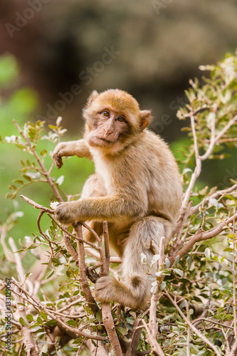 © Laurens, Naklejka premium Monkey at Cascades d'Ouzoud, Waterfall at Ouzoud, Morocco
