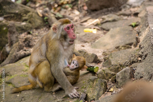 © liliportfolio, Naklejka premium Monkey at the background, the Zhangjiajie National Forest Park, China