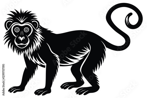 © shopone, Obraz premium Monkey black silhouette on a white background