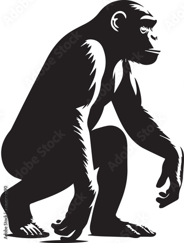 © Vector The King 1.0, Obraz premium Monkey Clipart Silhouette, monkey illustration, monkey silhouette vector isolated on white background