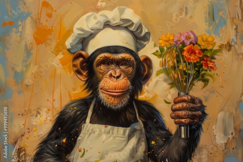 © Femke, Fototapeta premium monkey cooking cook animal artwork