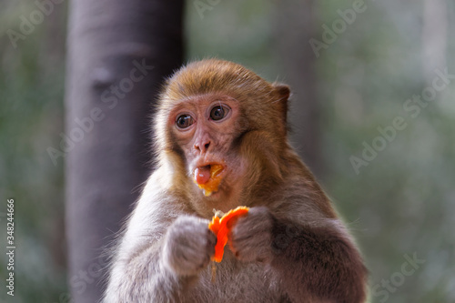 Naklejka premium Monkey eating an orange