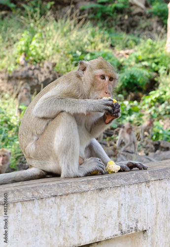 © pitchayarat2514, Obraz premium Monkey eating corn