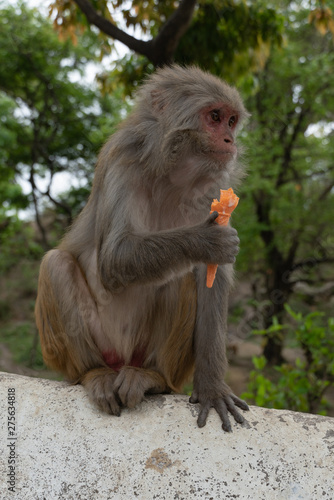 © vladimir kondrachov, Naklejka premium Monkey eating ice cream in nepal