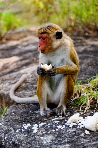 Obraz premium Monkey eats rice in wilderness, Sri Lanka