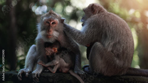 Obraz premium Monkey family care in Ubud monkey forest at Bali