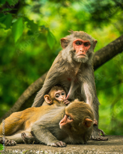 © Rompalli, Naklejka premium monkey family waiting for food at roadside