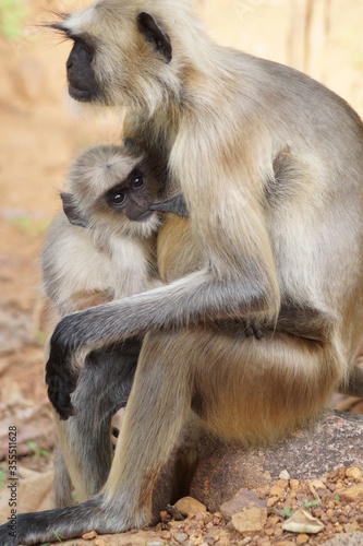 © nishant, Fototapeta premium monkey feeding her baby