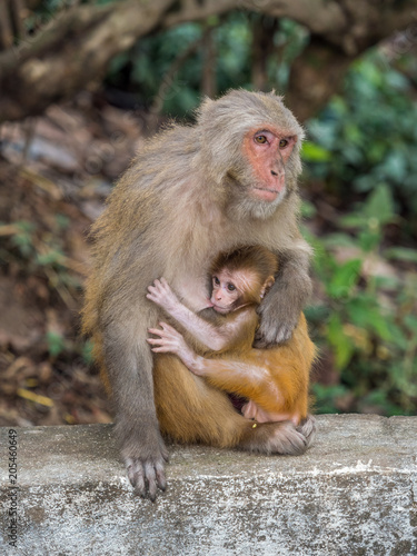 © oldmn, Fototapeta premium Monkey feeding the little cub